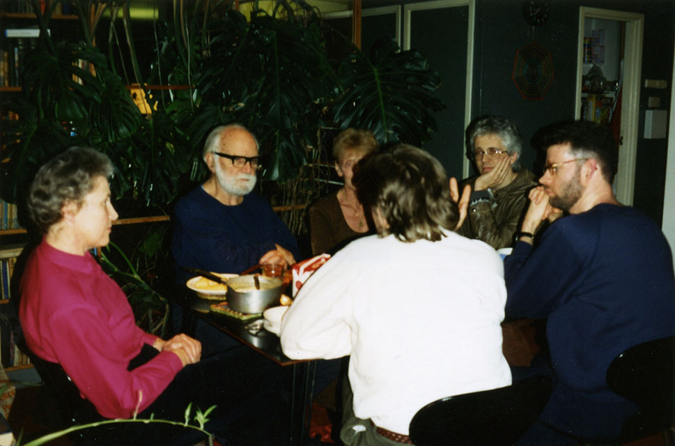 Clockwise: Anne Seward; Douglas Harding; Catherine Harding; Bill Garside; Colin Fox; Phil Dubuque.