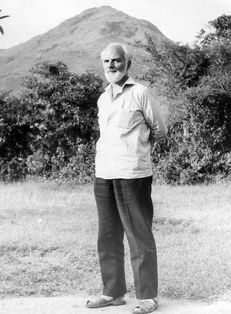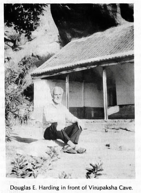 (Douglas Harding visited India between 15 December 1965 and 29 February 1966.)Douglas Harding in front of Arunachala, Tiruvannamalai, India, when he visited the Ramana Maharshi ashram.