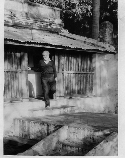Douglas Harding stepping out of Skandashramam nearby the Ramana Maharshi ashram, Tiruvannamalai, India.